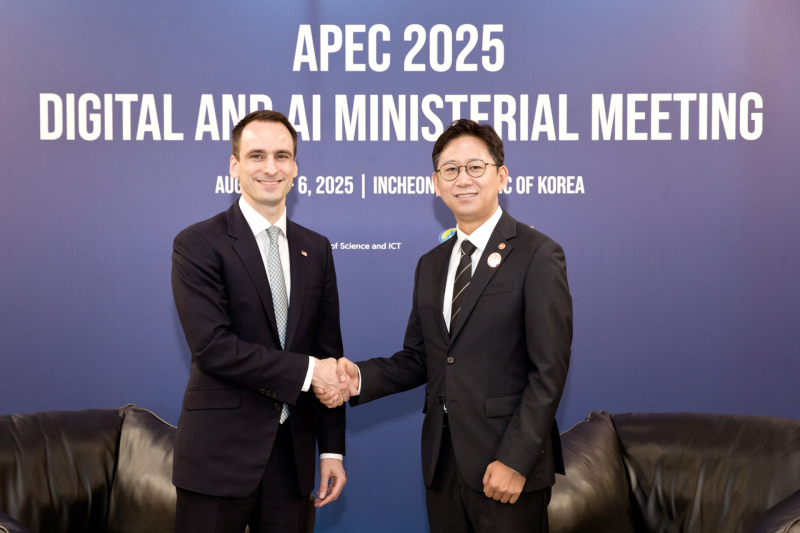 과기정통부는 인천 연수구 송도컨벤시아에서 열린 아시아태평양(APEC) 디지털‧인공지능(AI) 장관회의를 계기로 양자 면담이 이뤄졌다고 5일 밝혔다. 양측은 면담에서 ‘AI 액션 플랜’ 등 AI 정책 방향을 상호 공유하고 AI 기술 및 인프라 등 협력 방안을 논의했다.