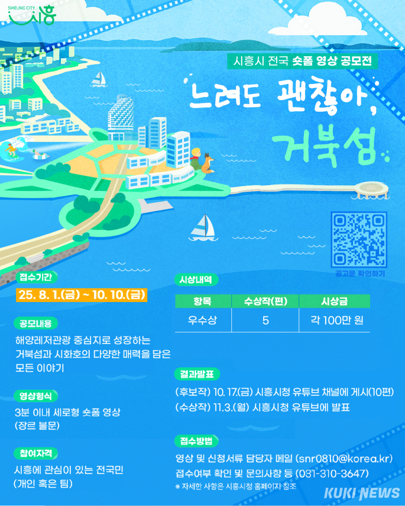 임병택 시장은 “거북섬과 시화호가 수도권 해양레저관광 중심지로 성장하는 데 이번 공모전이 전 국민과 함께 만드는 홍보의 장이 될 것”이라며 “다양한 시각과 감성을 담은 작품이 모여 시흥의 브랜드 가치를 한층 높이는 계기가 되기를 기대한다”고 말했다.