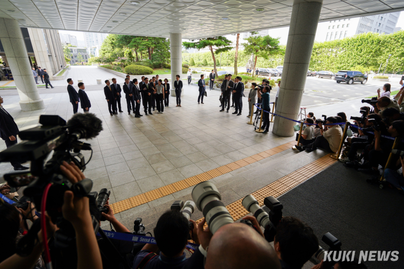 우 의장은 이날 청사 앞에서 취재진을 만나 “서면 또는 다른 방식으로 조사할 수도 있는데, 이 진상을 밝히는 데는 국회의장이 직접 출석해 협조하는 것이 특검을 출범시킨 정신에 맞다고 생각해 출석했다”며 “진술을 통해 계엄과 관련된 법적·정치적 정의를 바로세우는 일에 국회의장으로서 최선의 책임을 다하겠다”고 밝혔다.