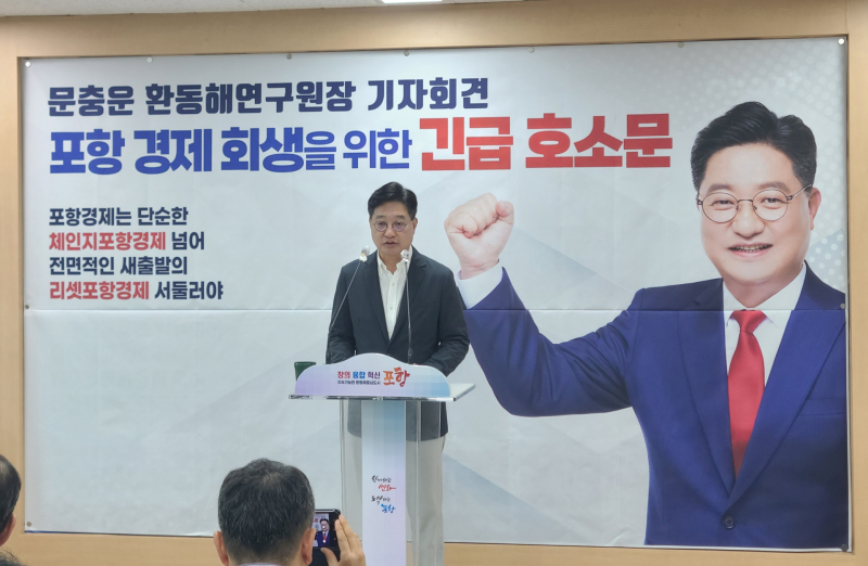 문 원장은 25일 포항시청 브리핑룸에서 포항 경제 회생을 위한 긴급 호소문을 발표했다.