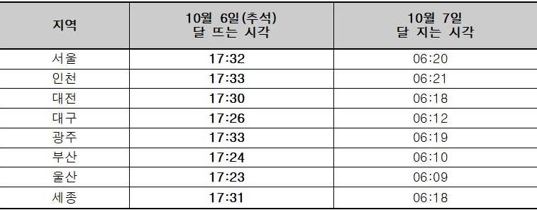 올해 한가위 보름달은 6일 오후 5시 32분(서울 기준)에 모습을 드러낸다.