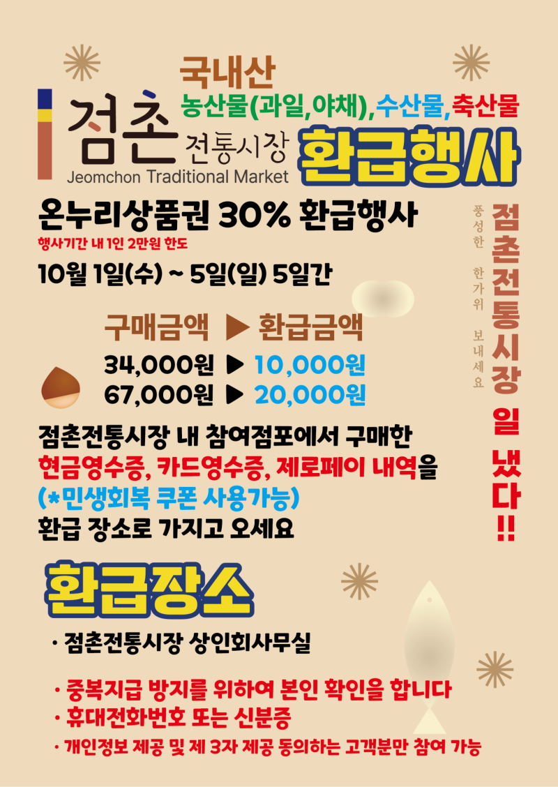 이와 함께 오는 5일까지 ‘농·축·수산물 온누리상품권 환급행사’도 진행한다.