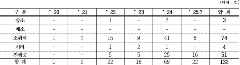 연도별로 2020년 34건, 2021년 49건, 2022년 42건, 2023년 39건, 지난해 57건, 올들어 지난 7월까지만 23건이다.