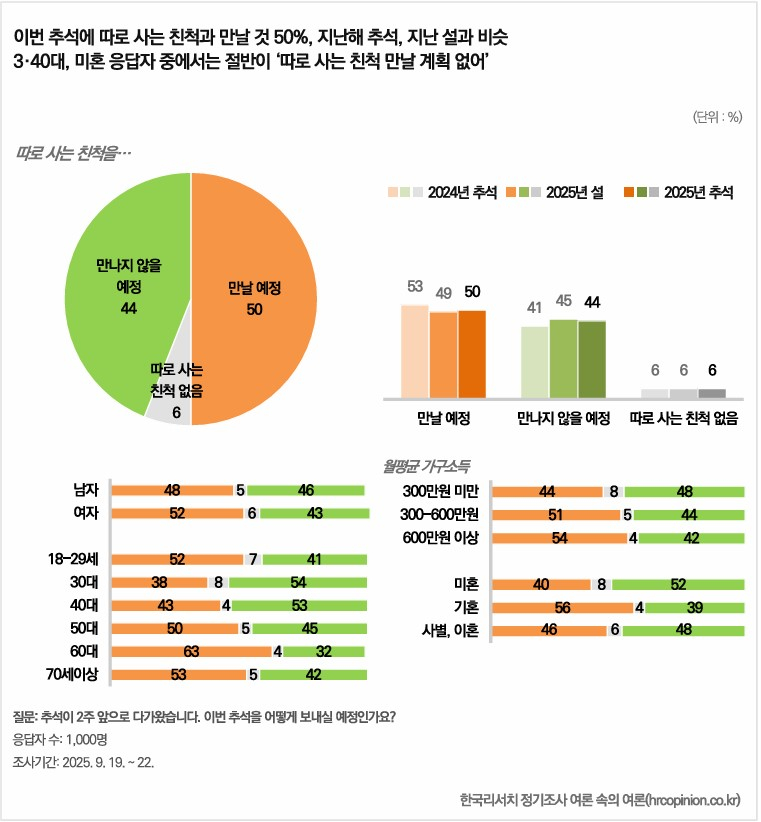 세대별 인식 차이도 뚜렷하다. 한국리서치가 9월 24일 발표한 조사에서 이번 추석에 차례·제사를 지낼 예정이라고 답한 이는 전체의 35%였다. 특히 18~39세의 38%가 ‘차례가 필요 없다’고 답한 반면, 60세 이상에서는 단 6%만 같은 답을 내놨다. 젊은 세대에겐 명절이 더 이상 ‘의무적 의례’가 아니라 선택 가능한 휴일이 된 것이다.