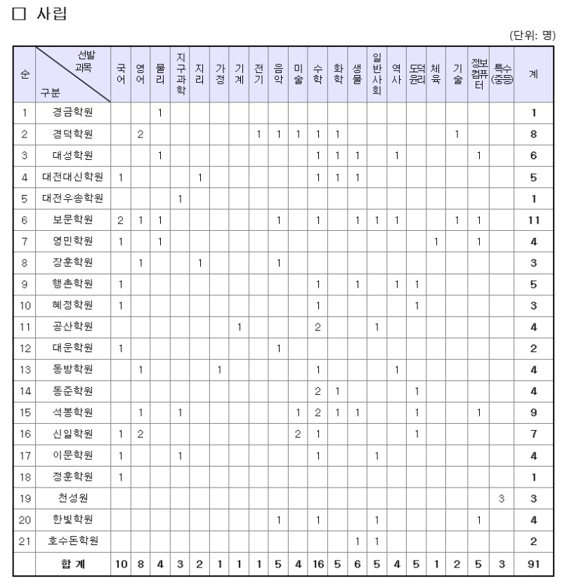 대전교육청은 2026학년도 공립과 사립 중등교사 171명을 선발하기로 하고 시험계획을 공고했다.