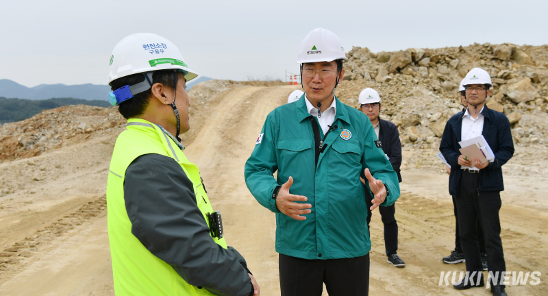 원강수 원주시장이 추석 연휴를 앞둔 지난 2일 부론일반산업단지를 찾아 공사 현장을 점검했다.