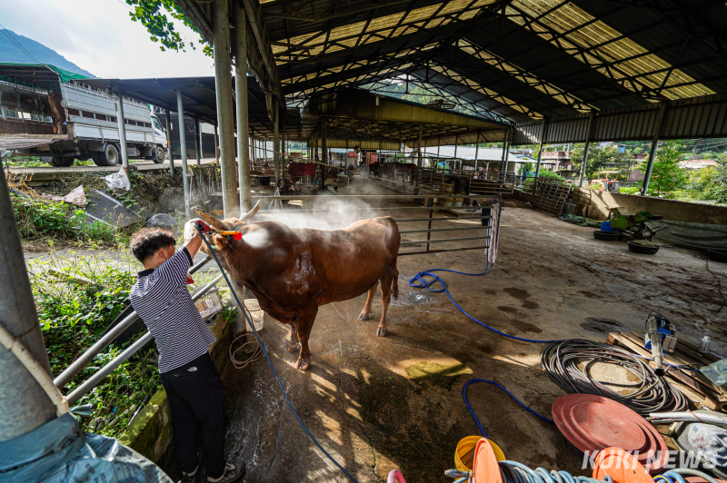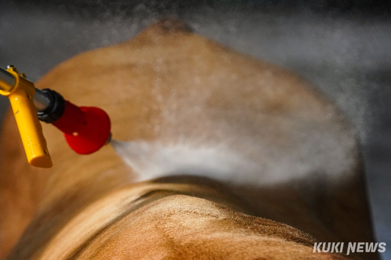 해가 기울면 소들이 먼저 일어난다. 물가 풀을 한 번 더 뜯고, 길 가장자리에 줄을 맞춰 트럭 쪽으로 걸어간다. 누군가 멈추면 함께 멈춘다. 사육장에 돌아오면 샤워가 먼저다. 흙이 남으면 밤새 뒤척인다. 털 사이 진흙을 벗겨내고, 발굽 틈 먼지를 물줄기로 턴다. 이어 톱밥을 깔고 고무 깔판을 손본다. 혹서기(7~8월)에는 강가에서 다시 잠자리를 편다.