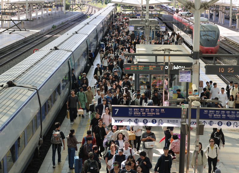 추석 연휴 엿새째인 8일 서울역이 귀경객들로 붐비고 있다. 사진=연합뉴스