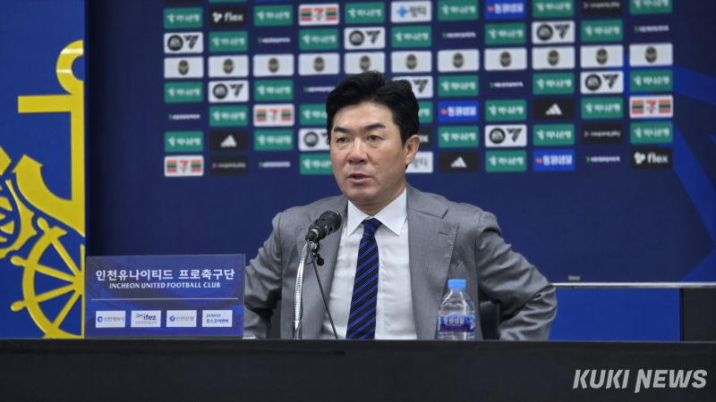 윤정환 인천 유나이티드 감독이 8일 오후 2시 인천축구전용경기장에서 열린 ‘하나은행 K리그2 2025’ 33라운드 수원과 홈경기를 마친 뒤 기자회견에 임하고 있다. 김영건 기자