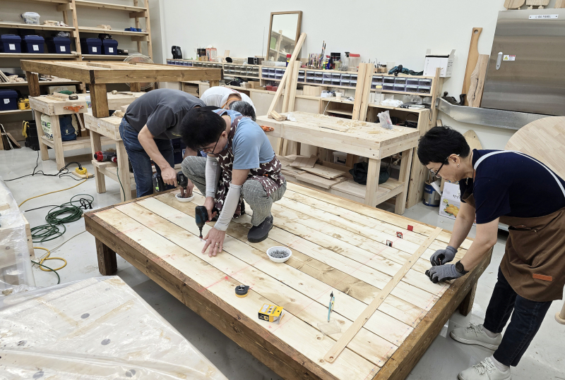참여자들은 목재 절단·가공·조립 과정을 함께하며 방충·방수 도료를 꼼꼼하게 도장해 장기간 야외 사용에도 변형이나 손상이 최소화되도록 했다.