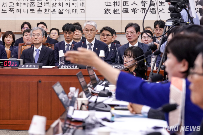 법사위는 이날 대법원과 법원행정처 등에 대한 국정감사를 진행했다. 조 대법원장은 인사말을 통해 “사법부가 국민의 기대와 눈높이에 미치지 못하는 현실을 무겁게 받아들이고 있다”며 “국민의 지적을 겸허히 수용하고, 국민에게 신뢰받는 사법부로 거듭나기 위해 최선을 다하겠다”고 밝혔다.