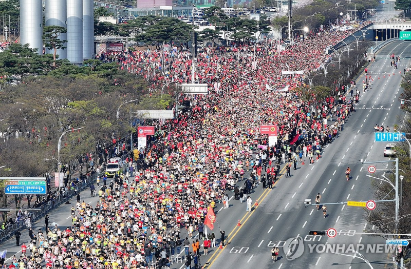 지난해에는 81일 만에 4만130명이 접수해 조기 마감됐지만, 올해는 그보다 60일 앞당겨 마감됐다. 특히 10km 종목은 접수 개시 당일 1만5000여 명이 모두 신청을 마쳤고, 건강달리기(5km)는 3일 만에 5000여 명이 마감됐다. 풀코스(42.195km) 역시 21일 만에 2만여 명이 채워지며 역대 최단기간 기록을 세웠다.