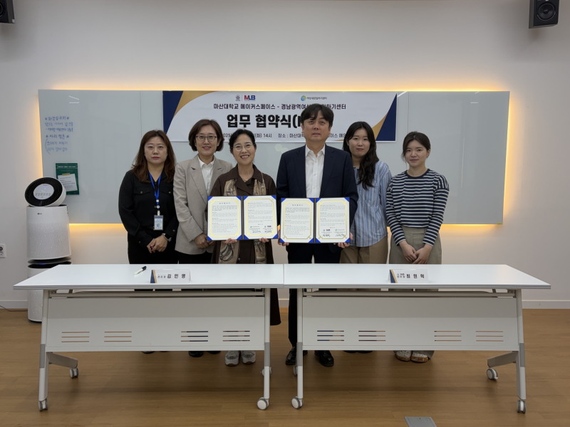 마산대학교 메이커스페이스 M.L.B가 14일 경남광역여성새로일하기센터와 업무협약(MOU)을 맺고, 지역 여성의 역량 개발과 메이커 분야 전문인력 육성에 나섰다.