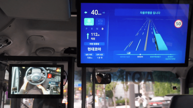 버스 전면에는 승객이 운전 상황을 확인할 수 있는 CCTV가 설치돼 있고, 자율주행 시 알림과 표시가 따로 제공된다. 양씨는 “정말로 손을 떼고 운전할 수 있을지 의문이 들었는데 버스를 타 보니 ‘이 정도면 괜찮겠다’는 생각이 든다”고 말했다.