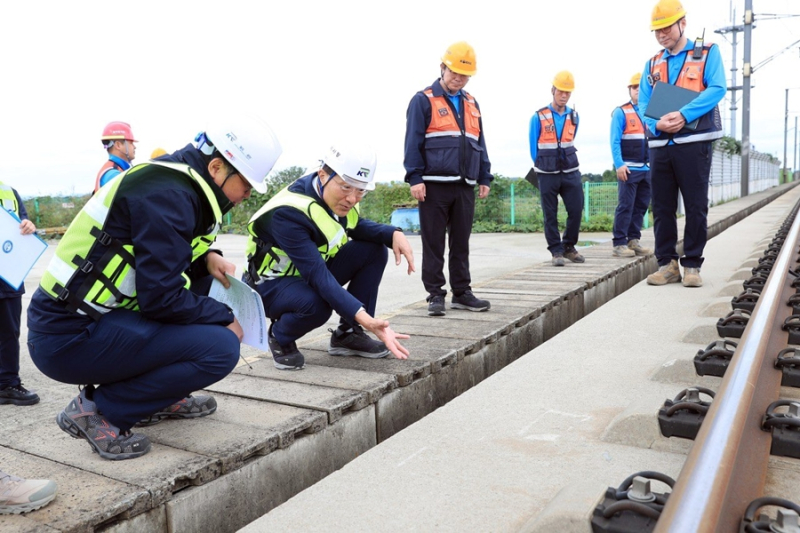 이성해 국가철도공단 이사장은 14일 호남고속철도 신작교~어량교 구간 노반침하 하자보수 현장을 점검했다.