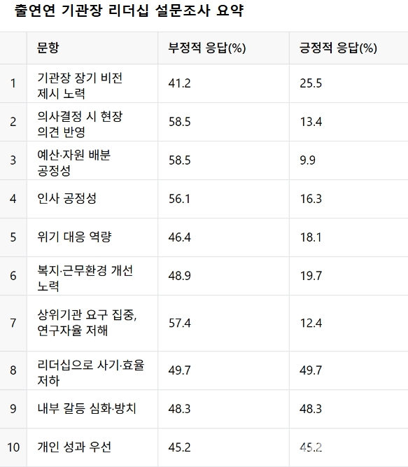 특히 “현재 선임 절차가 구성원 의견을 철저히 배제한 결과 리더십 정당성이 약화되고, 혁신 정책은 내부 반발에 직면한다”며 “출연연은 원자력, 생명, 전자, 기계 등 다양한 전문 분야를 포괄하지만, 소수의 심사위원으로는 후보자의 연구 비전과 기술적 역량을 제대로 평가하기 어렵고, 심사위원 로비 가능성까지 존재한다”고 강조했다.