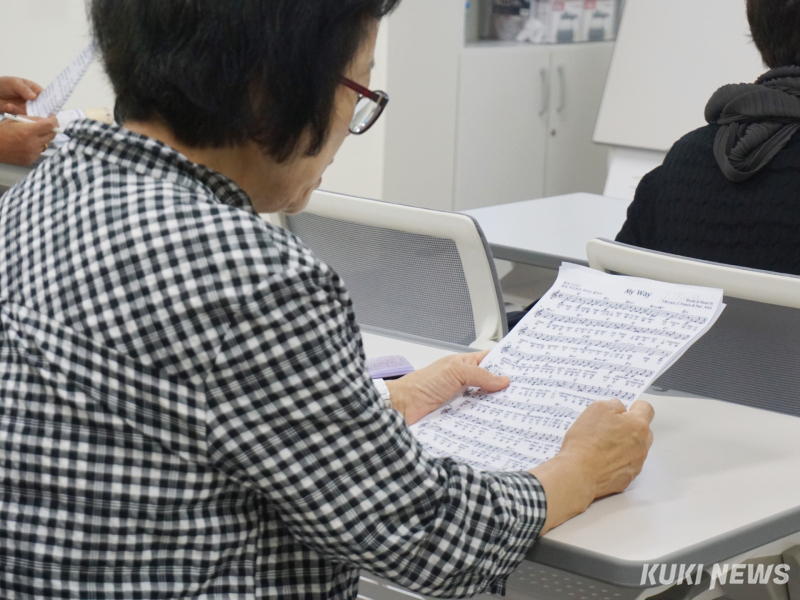 전씨는 지난번 수업에서 배운 프랭크 시나트라의 ‘마이 웨이(My way)’를 혼자서 열창하기도 했다. 특히 노래 후반부에는 수강생 모두가 코러스처럼 합창하면서 교실 속 작은 무대가 연출됐다. 그는 “학창시절에 유행했던 노래를 함께 부르니 참 즐겁다”며 “친구들과 노래방을 갈 때가 있지만 그보다 젊어지는 느낌이 든다”고 소감을 밝혔다.