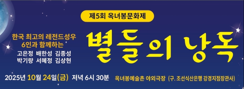 별들의 낭독은 지난 5월 옥녀봉예술촌 초연 이후 선보이는 두 번째 무대로, 지역 예술이 지닌 내밀한 정서와 예술적 깊이를 확장하기 위한 시도로, 가을을 테마로 문학과 낭독으로 엮어내며 소도시의 시간과 감성을 시적으로 재현할 것으로 보인다.