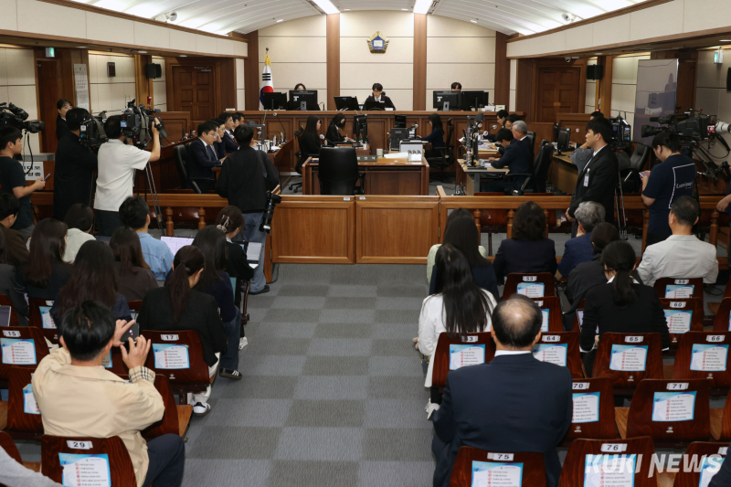 류경진 부장판사가 17일 서울 서초구 서울중앙지법에서 열린 이상민 전 행안부 장관 언론사 단전·단수, 위증, 내란중요임무종사 등 사건 첫 재판을 심리하고 있다.12·3 비상계엄 관련 언론사 단전·단수를 지시한 혐의로 구속기소 된 이상민 전 행정안전부 장관이 17일 오전 서울 서초구 서울중앙지방법원에서 열린 첫 공판에 출석해 있다.