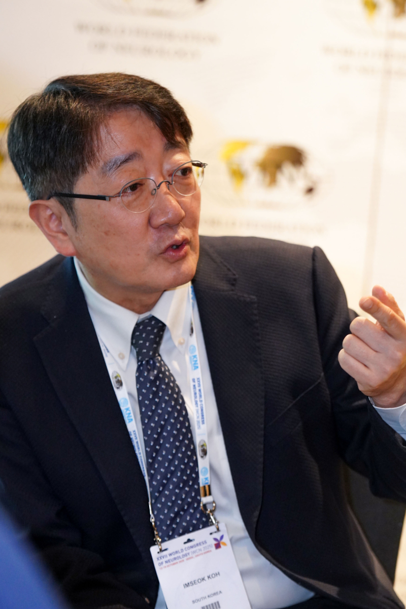 고임석 대한노인신경의학회 회장이 15일 서울 강남구 코엑스에서 열린 ‘2025 세계신경과학회학술대회(WCN)’를 마친 뒤 쿠키뉴스와 인터뷰하고 있다. 유희태 기자