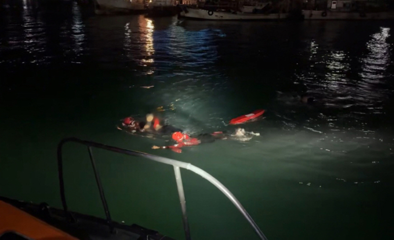 추락 후 해상 부잔교 고정 체인을 붙잡고 있던 모습을 인근 낚시객이 발견해 신고했고, 신고 5분여 만인 오전 2시 12분쯤 해경이 구조에 성공했다.