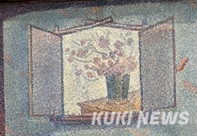 미술사가들은 꽃병의 두께 때문에 그것이 다른 이미지 위에 그려진 것이 아닌지 의문을 품었다. 이탈리아 광학연구소에서 스캐너를 한 결과, 이 꽃병은 원래 쇠라의 작업하는 모습을 그린 자화상이었는데, 친구들이 놀리자 수정을 하였다. 쇠라는 무척 내성적이고 조용한 성정을 가졌지만, 끈기 있고 심지가 굳은 사람이었다. 미술관에서는 쇠라의 자화상을 복원하였다.