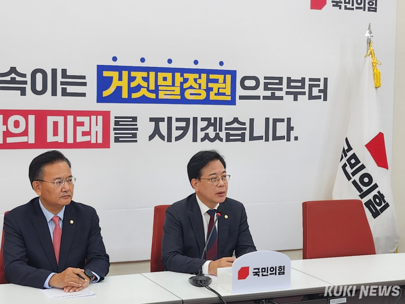 송 원내대표는 미공개 정보를 이용한 주식 거래 의혹을 받고 있는 민중기 특별검사를 향해 사퇴를 촉구했다. 그는 “민주당이 임명한 특검답게 선택적 정의와 내로남불의 전형을 보여주고 있다”고 비판했다.