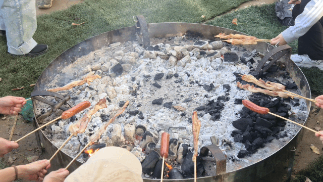 화덕 체험존에서는 시민들이 꼬치에 베이컨과 소시지를 꽂아 굽고 있었다. 고소한 냄새가 주변으로 퍼졌다.