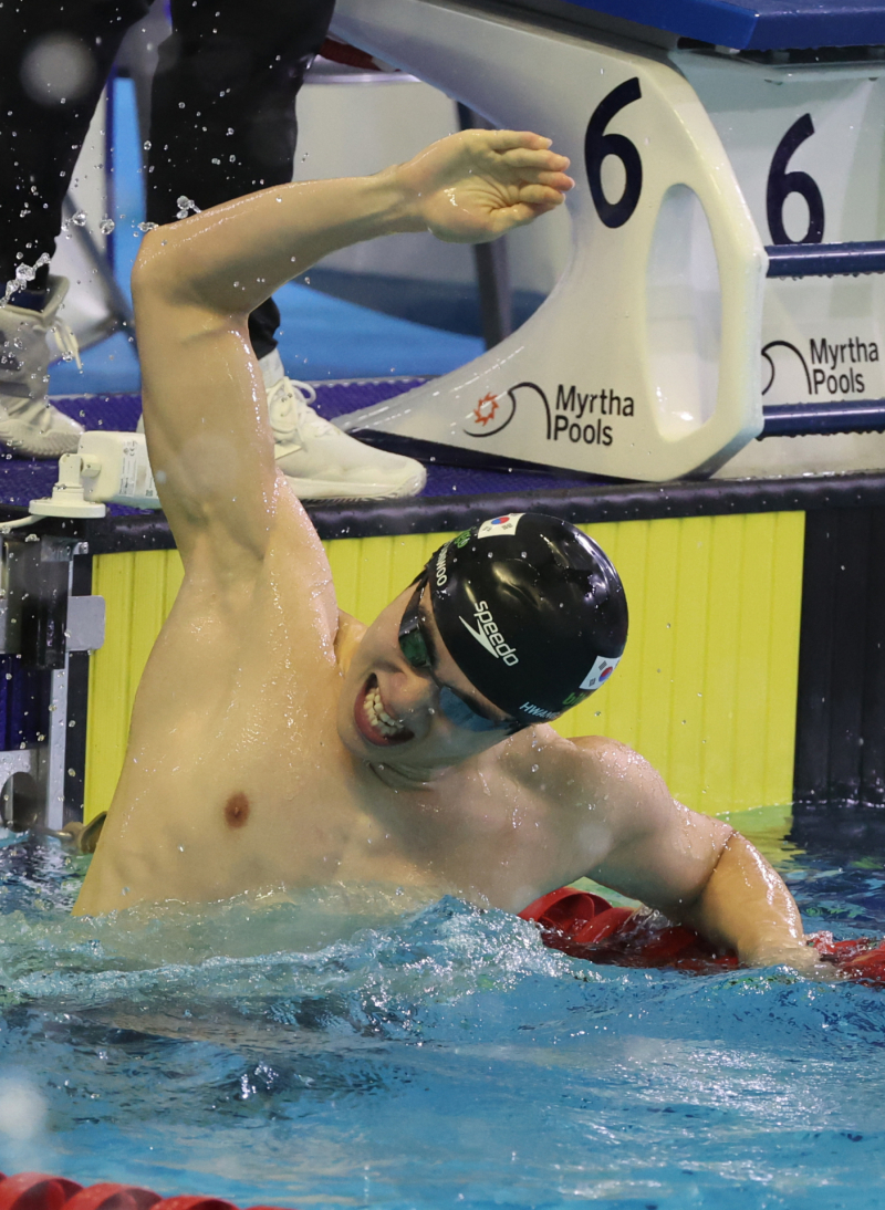 황선우는 이날 초반부터 역영했고 마지막까지 질주를 이어갔다. 관람하던 팬들은 전광판을 통해 게시되는 시간을 보며 환호했다. 황선우가 결승점에 다다른 순간에는 박수가 쏟아졌다. 황선우도 기록을 확인한 뒤 포효했다.