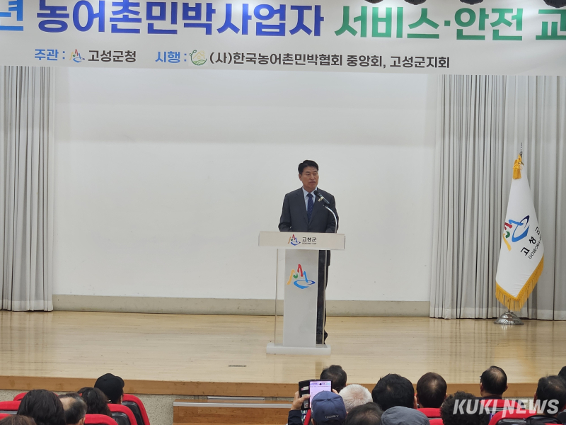 21일 농어촌 민박 사업자들에 따르면 함명준 군수는 지난 14일 고성문화의집에서 열린 2025년 농어촌민박사업자 서비스·안전교육에 앞서 한 인사말에서 죽왕면 R호텔과 O리조트를 예를들며 대형 숙박시설로 인해 민박이 활성화됐다고 말해 민박 사업자들을 당황케 했다.