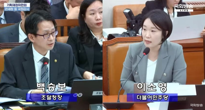 1일 국회 기획재정위원회 국정감사에서 질의하는 이소영 국회의원. 국회방송 캡쳐