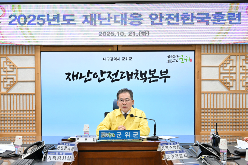 대구 군위군은 21일 김진열 군수 주재로 군민 안전 강화를 위한 ‘2025년 안전한국훈련’을 실시했다고 밝혔다. 이번 훈련은 기상이변과 국지성 호우에 대비해 실질적인 재난 대응체계를 강화하기 위한 목적에서 추진됐다.