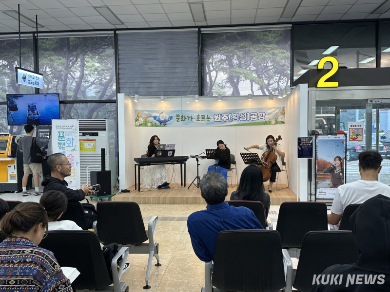 원주문화재단이 최근 원주의 하늘 관문인 원주공항에서 찾아가는 음악회를 진행해 눈길을 끌었다.