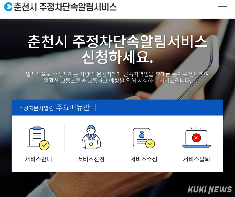 가입은 춘천시 홈페이지 교통포털 또는 서비스 전용 페이지에서 차량번호와 휴대전화 번호를 입력하면 된다.