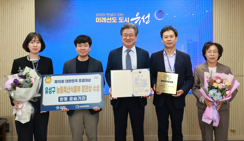 대전 유성구가 방동 윤슬거리 조성 사업으로 ‘2025년 제15회 대한민국 조경대상’ 공공부문 분야에서 농림축산식품부 장관상을 받았다.