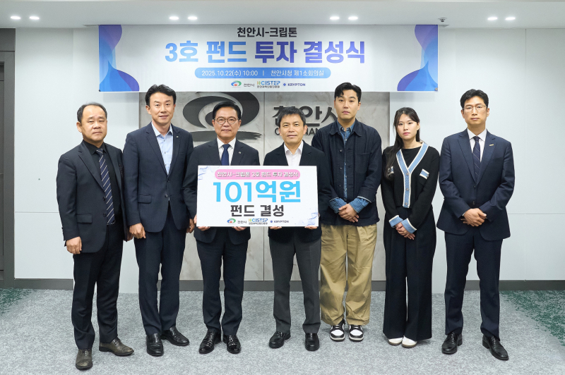 시는 이날 시청 소회의실에서 101억원 규모의 ‘크립톤 지역 창업 생태계 라이콘 펀드’ 운용을 위해 ㈜크립톤과 3호 펀드 투자 결성식을 열었다.