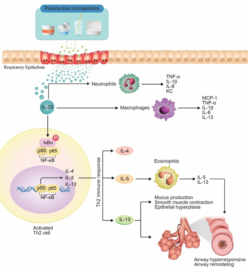 연구진은 PS 미세플라스틱에 노출된 상피가 손상되면서 IL-33 단백질이 분비되고 천식 증상과 기도 염증이 유발되는 과정을 증명했다.