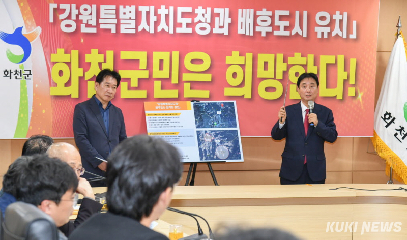 최문순 화천군수는 "화천지역으로 배후도시를 이전하는 것이야말로 균형발전에 부합할 뿐 아니라, 행정효율과 도민 편의 증진을 위해 가장 확실한 명분을 갖춘 최적의 대안"이라고 강조했다.