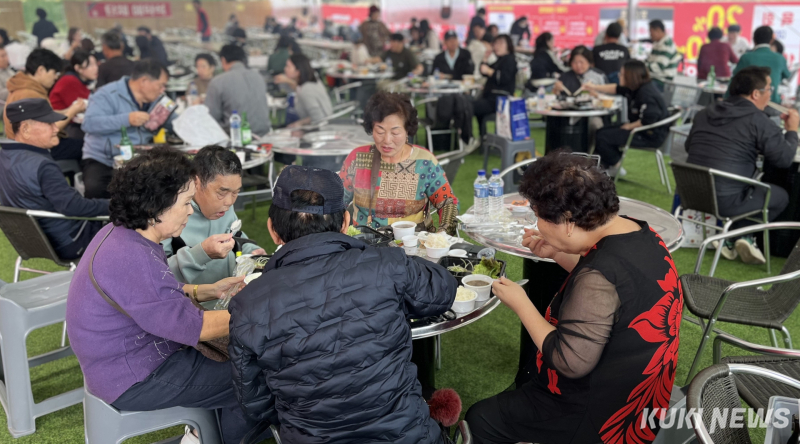 ‘제21회 횡성한우축제’가 22일 화려한 막을 올린 가운데 축제 하이라이트인 ‘구이 터’가 붐비고 있다.