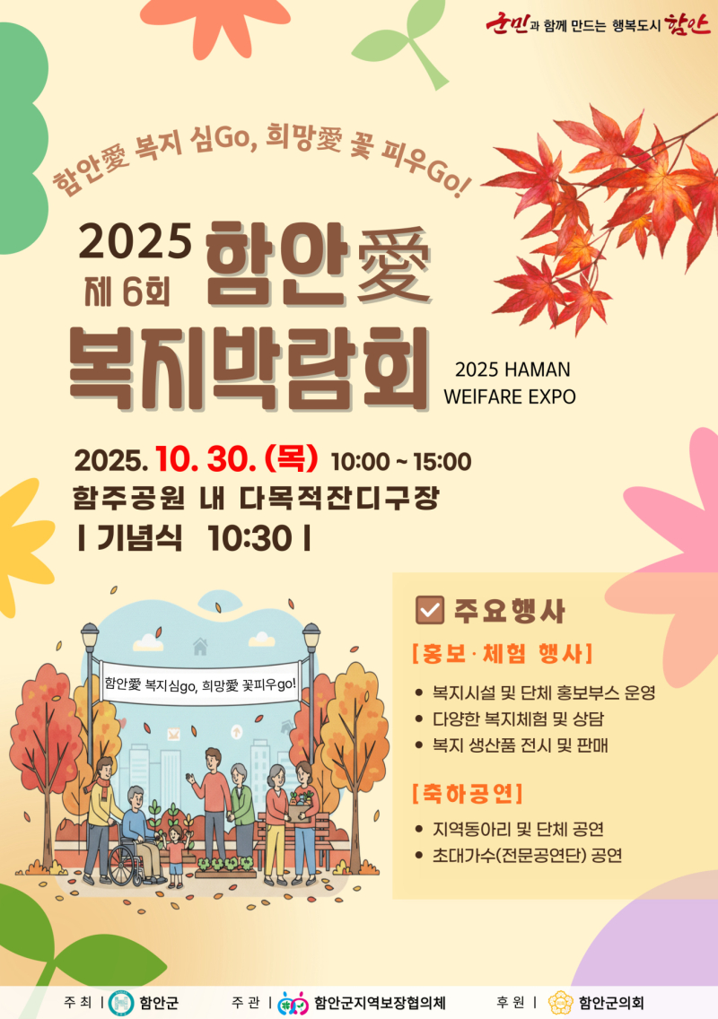 개회식에서는 지역 복지 발전에 기여한 유공자 표창과 초청 공연이 진행된다. 또한 복지종사자 장기자랑, 행운권 추첨 등 군민이 함께 즐길 수 있는 다채로운 부대행사도 준비됐다.