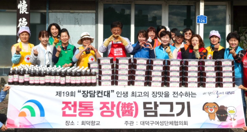 대전 대덕구 여성단체협의회(회장 황오심)는 22일 회덕향교에서 ‘전통 장(醬) 나눔 행사’를 열고 지역 내 홀몸 어르신, 한부모 가정, 다문화가정 등 70가구에 된장과 간장을 전달했다.