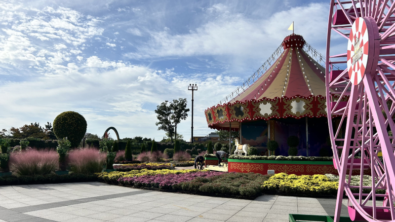 중앙광장에는 대형 국화 조형물 ‘회전목마’(가로 12m, 높이 10m)와 ‘대관람차’(가로 4m, 높이 4m)가 준비됐다.