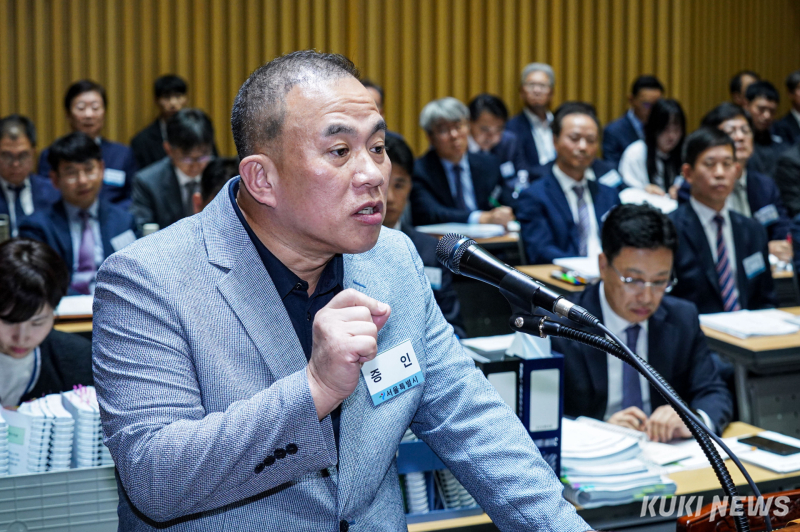 신정훈 행안위 위원장은 수차례 자제를 요청했지만 명씨의 고성은 이어졌다. 질의를 맡은 민주당 의원들도 그의 거친 발언을 제지하지 못했다. 이에 서범수 국민의힘 의원은 “서울시에 대한 국감은 시의 업무 내지는 국가 위임·예산 지원 사업과 관련돼야 하는데, 이와 무관한 명씨의 발언은 국감의 취지나 범위에 맞지 않는다”며 “재판·수사 중인 사람을 불러 (국감장을) 정쟁의 장으로 몰아가는 게 취지에 맞느냐”고 비판했다.