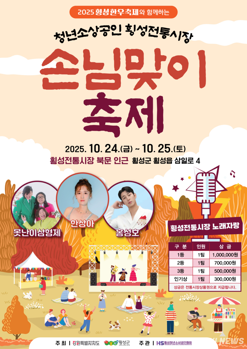 강원 횡성군은 제21회 횡성한우축제 기간인 24일부터 25일까지 ‘2025년 청년 소상공인 & 횡성전통시장 손님맞이 축제’를 개최한다.
