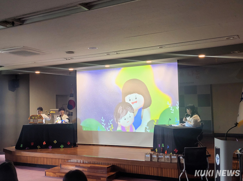 행사는 동화구연 〈만년 샤쓰〉와 방정환의 〈나비의 꿈〉 낭독으로 문을 열었다. 전문 배우들의 낭독이 이어지자 강당은 숨소리조차 조심스러울 만큼 고요해졌고, 아이들과 학부모 모두가 무대에 집중했다.