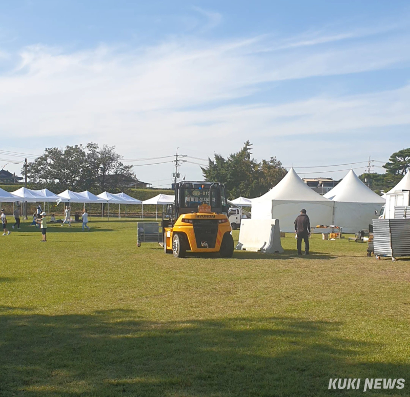 이런 기대에도 준비 과정 속 안전은 여전히 관심 밖이다. 축제를 앞두고 비가 예보된 터라 해미읍성 내 특설무대 설치는 그야말로 시장터였다.