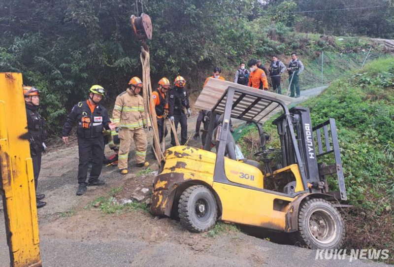 강원 원주에서 지게차가 도랑에 빠지면서 운전자가 깔려 숨지는 사고가 발생했다. 25일 소방 당국에 따르면 이날