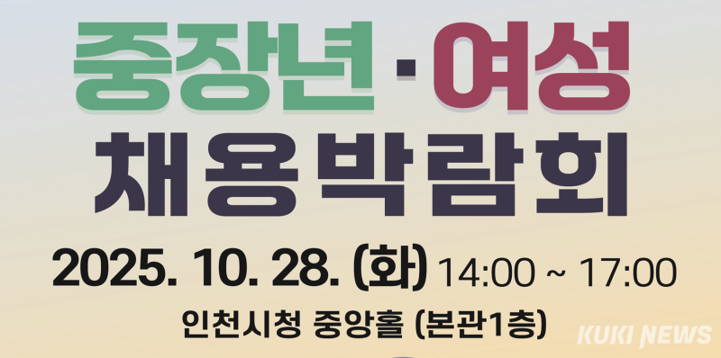 인천시는 오는 28일 인천시청 중앙홀에서 중·장년과 여성의 일자리 도전과 사회 참여 확대 지원을 위한 2025 인천 중장년·여성 채용박람회를 개최한다고 27일 밝혔다.