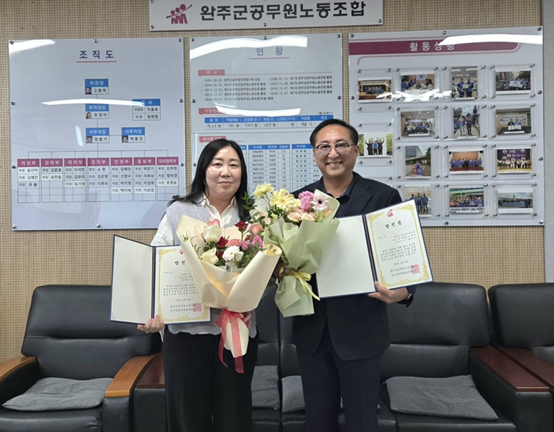 제8대 완주군공무원노동조합 임원 선거에서 고환희 위원장 후보와 유정아 부위원장 후보가 당선됐다.