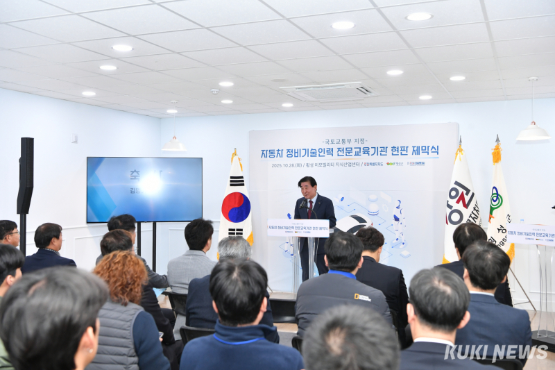 횡성군은 28일 횡성 이모빌리티 지식산업센터에서 국토교통부로부터 지정받은 ‘미래 차 정비기술인력 전문교육 기관’ 현판식을 개최했다.
